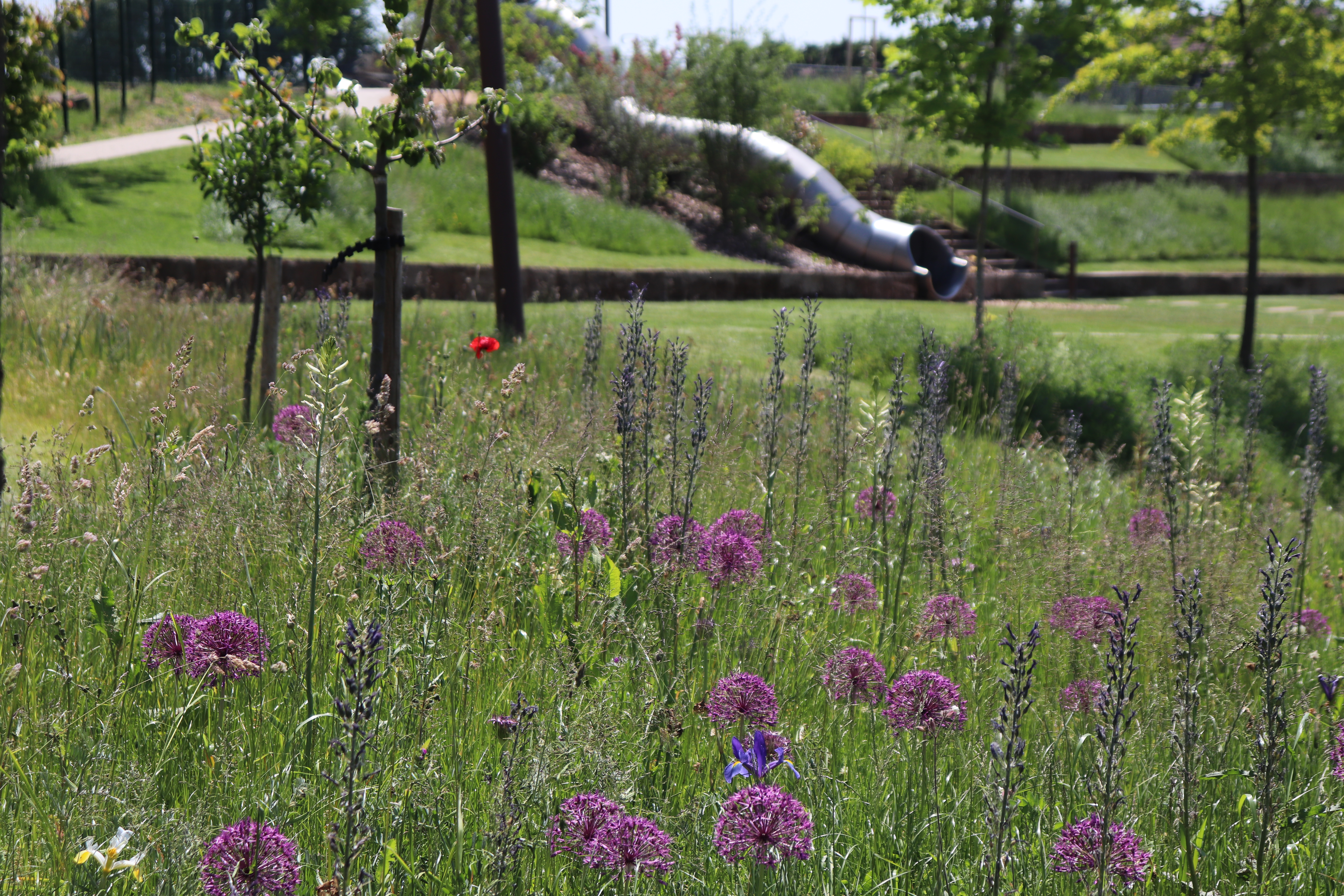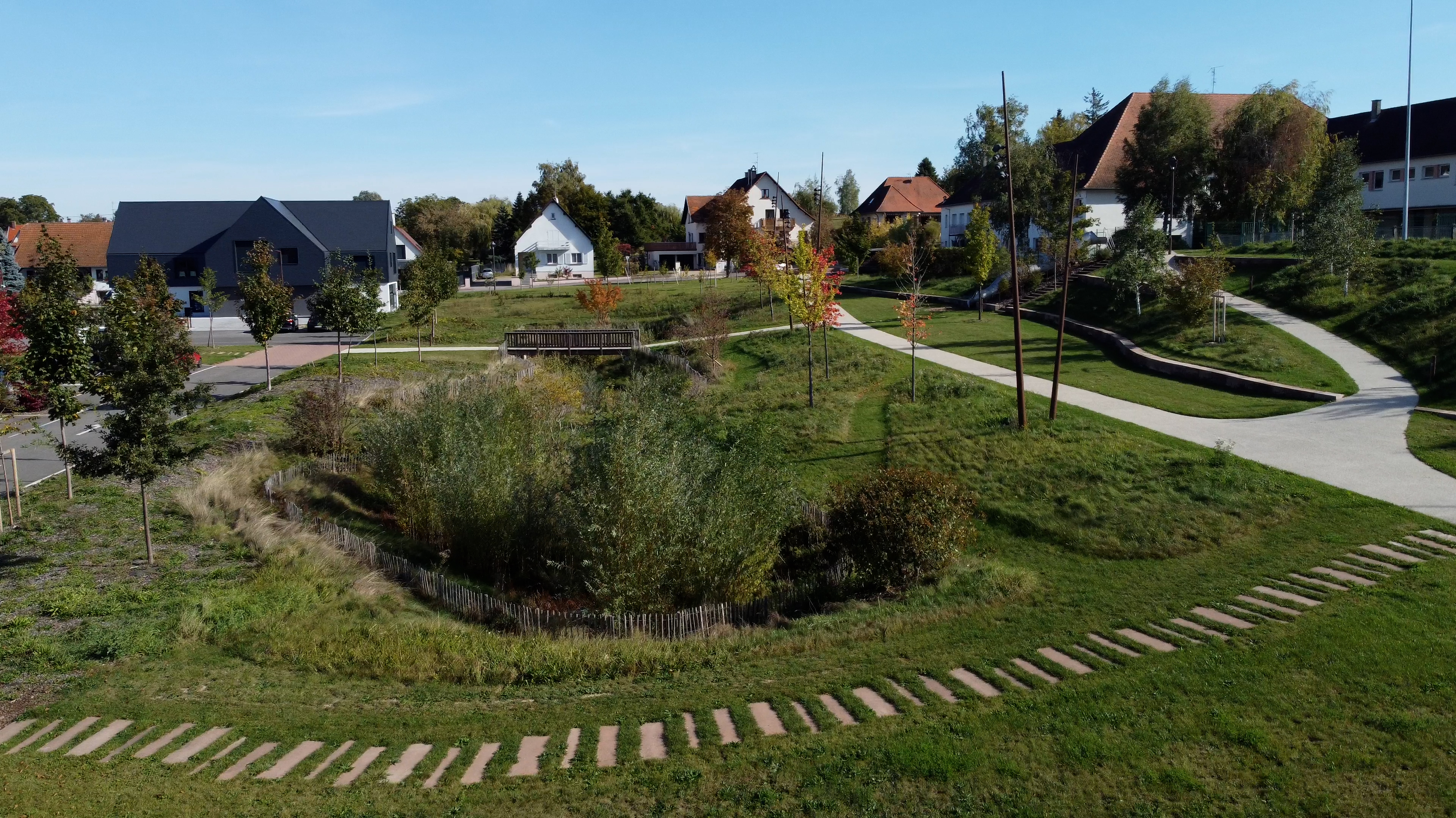 • réaliser un grand parc paysager en coeur de village et des espaces fleuris, arborés, variés et durables